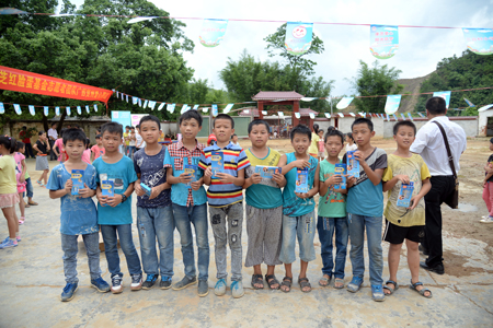 此次探訪,志愿者們提前了解到學(xué)校體育教學(xué)設(shè)施落后,辦公用品匱乏。當(dāng)天,由李幽泉先生代表康芝紅臉蛋基金向三合村小學(xué)捐贈(zèng)愛心專項(xiàng)基金和愛心藥箱。愛心基金將用于學(xué)校配置體育器材和辦公電腦等物資,為孩子們創(chuàng)造更好的運(yùn)動(dòng)條件,為老師們提供更好的辦公環(huán)境。隨后,在場的康芝高管人員一同為孩子們發(fā)放愛心禮包。