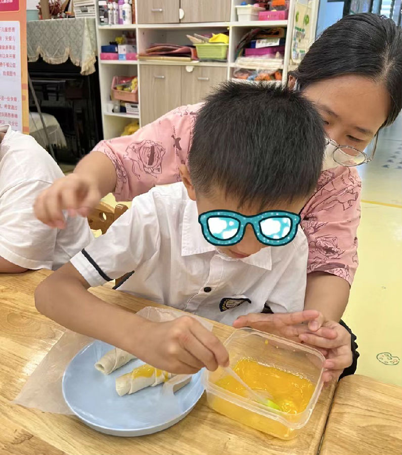 在烘焙過程中,志愿者生動形象地給孩子們分享生活的小常識,讓可愛的小天使在鍛煉動手能力的時(shí)候,還能感受到親力親為的樂趣,激發(fā)他們的想象力,活躍大腦思維。