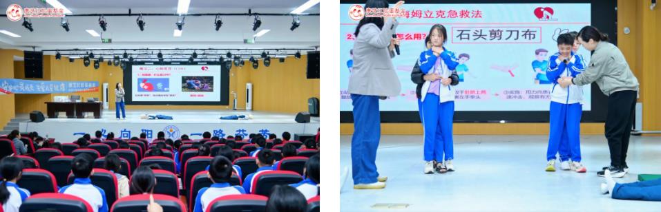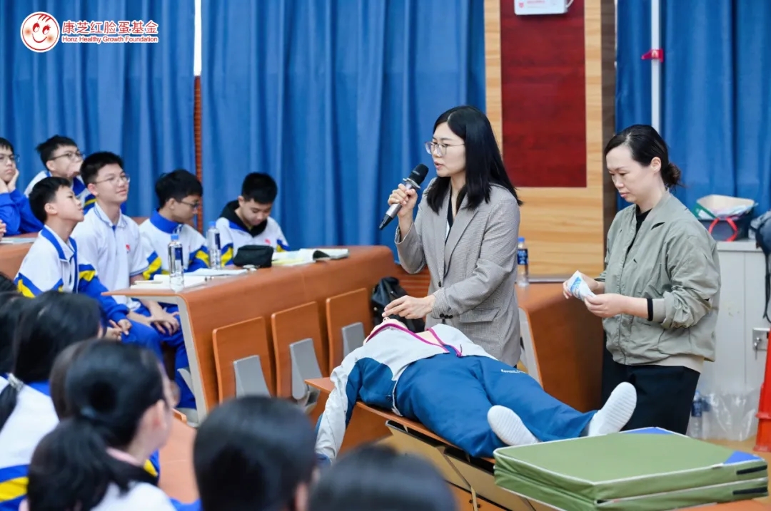 活動(dòng)期間,海南省婦女兒童醫(yī)學(xué)中心兒童重癥醫(yī)學(xué)科副主任醫(yī)師王琪圍繞“海姆立克與心肺復(fù)蘇急救法——學(xué)會(huì)拯救生命的魔法”主題,詳細(xì)講解了急救的基本原理與操作步驟,并通過真人示范和情景模擬,為學(xué)生們帶來一堂生動(dòng)實(shí)用的“生命必修課”。